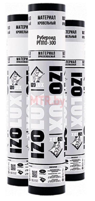 Рубероид IzoLUX (Изолюкс) РППО-300 - кровельный рулонный материал на основе картона плотностью 300 г/м2 с добавлением битумно-вяжущей смеси. Поверхность покрыта пылевидной посыпкой. Масса покровного слоя 800 г/м2. Применяется для нижнего слоя кровли: черепица, профнастил, шифер.