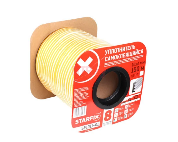 Уплотнительная лента для окон и дверей самоклеящаяся Starfix тип E 10*4 мм, двойная белая, 150м