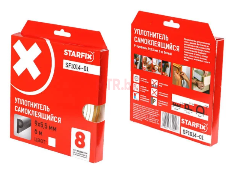 Уплотнительная лента для окон и дверей самоклеящаяся Starfix тип P 9*5,5 мм, двойная белая, 6м