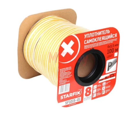 Уплотнительная лента для окон и дверей самоклеящаяся Starfix тип P 9*5,5 мм, двойная белая