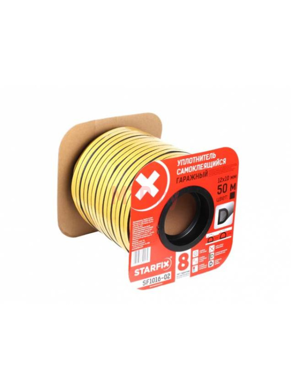 Уплотнительная лента гаражная самоклеящаяся Starfix тип D 12*10 мм, двойная черная, 50 м