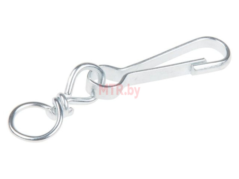 Карабин с вертлюгом тип А применяется для бытовых целей, крепления ремней, веревок, шнуров, ключей. Карабин типа А представляет собой замкнутую восьмерку с пружинящими, перекрывающими друг друга концами. Может использоваться как карабин для животных соединять поводок с ошейником. Применять карабин для подъема грузов не рекомендуется.