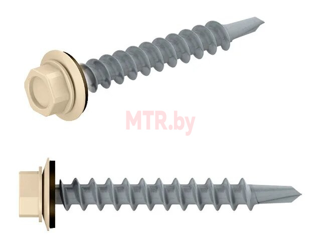 Саморез кровельный Starfix 4.8*29 мм цинк, шайба с прокладкой, PT1, RAL 1014 (200 шт)