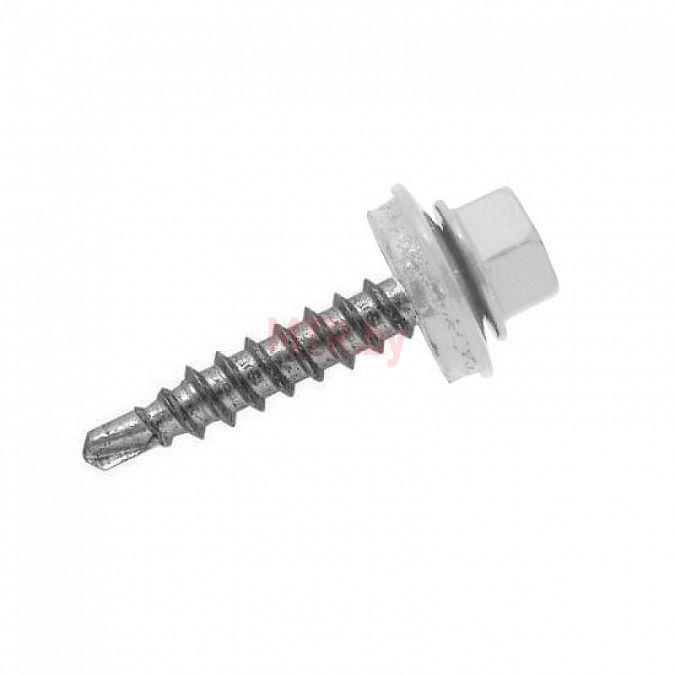 Оцинкованный кровельный саморез с шестигранной головкой, шайбой c резиновой EDPM прокладкой и сверловидным наконечником. Применяется для крепления кровельных и фасадных металлических листов к деревянным элементам.