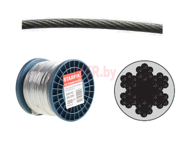 Трос стальной Starfix DIN 3055 в ПВХ М5(4), бухта 200 м