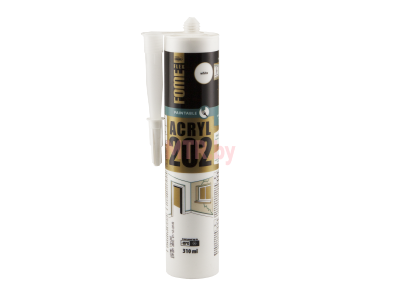 Герметик акриловый FOME FLEX Acryl 202 белый 310 мл (01-5-1-101) на основе акриловой дисперсии, стойкий к УФ излучению; хорошо сцепляется с бетоном, кирпичом, деревом и другими материалами, за исключением стекла битумных поверхностей. Не приводит к коррозии металлов, практически без запаха, окрашивается.
