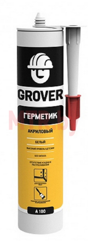 Герметик акриловый GROVER A100 белый 300 мл предназначен для заполнения швов между листами гипсокартона. Служит для заполнения трещин и малоподвижных швов в стенах и потолках из бетона, кирпича, гипса, дерева, кафеля. Применяется для заполнения швов по периметру оконных рам и дверных коробок.