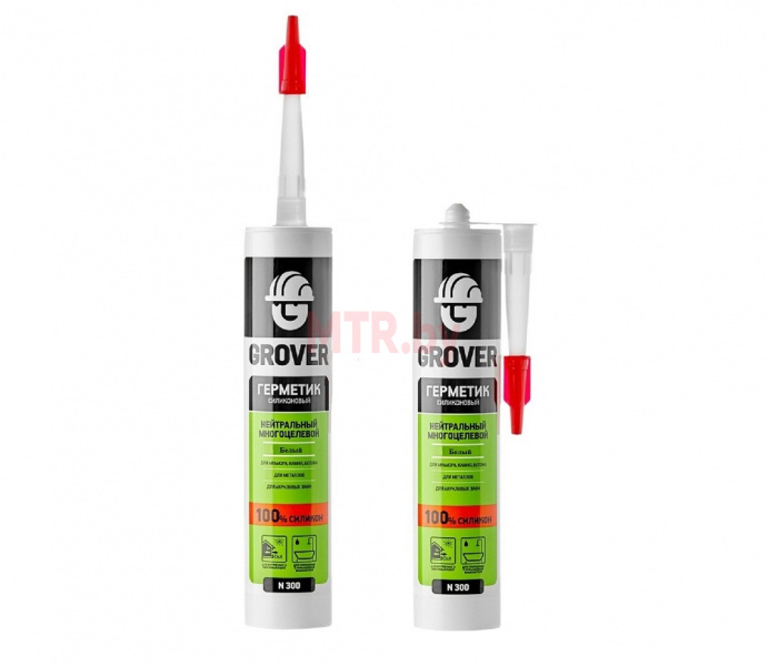 Герметик силиконовый GROVER N300 нейтральный белый 300 мл химически нейтрален, не вступает в реакцию с поверхностями, не оставляет пятен на краях пористых материалов.