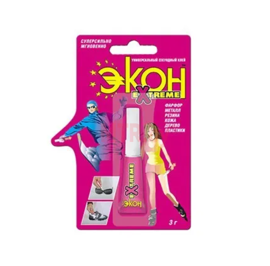 Универсальный секундный клей для ремонта изделий из металла, резины, дерева, керамики, фарфора, кожи, пластика и бумаги, а также для склеивания предметов из пробки в различных сочетаниях, кроме, посуды, контактирующей с пищей.