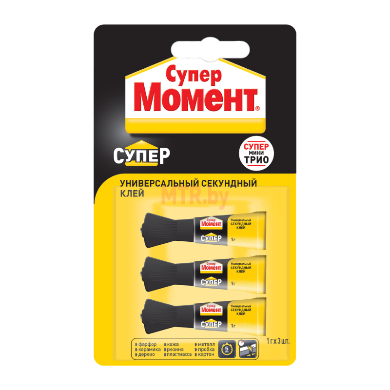 Клей цианоакрилатный Супер Момент Супер секундный, универсальный, 1 г*3 шт
