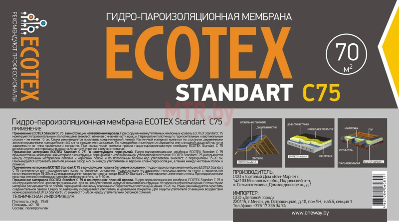 Пленка гидропароизоляционная ECOTEX Standart C75 70 кв.м применяется для защиты утеплителя и внутренних элементов стен и кровли от влаги, ветра, а так же обеспечивает выведение водяных паров из подкровельного пространства и утеплителя.