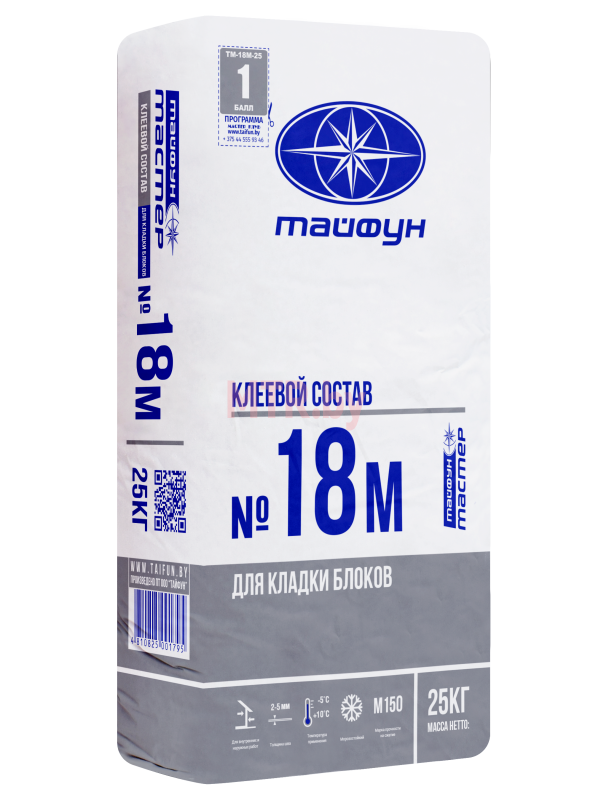 Клеевой состав «Тайфун Мастер» № 18М содержит противоморозные добавки, позволяющие осуществлять выполнение работ при температуре от – 5°С до +10°С.