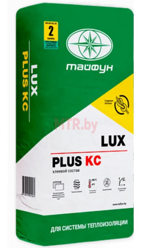 Клеевой состав полимерминеральный КС1 «Люкс Плюс» (КС1 «Люкс Плюс» М) предназначен для устройства армированного слоя по пенополистирольным и минераловатным плитам в легкой штукатурной системе утепления зданий и сооружений «Тайфун», и по не утепляемым поверхностям. Может быть использован для приклеивания теплоизоляционных материалов к утепляемой поверхности.