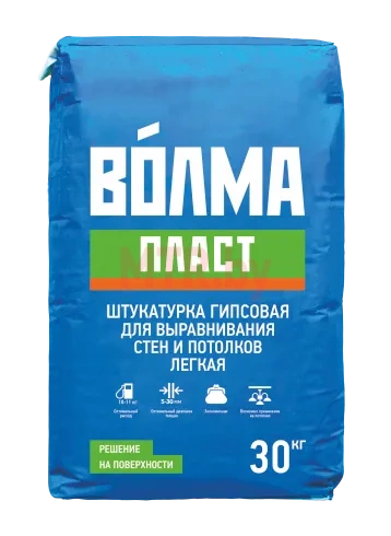 «ВОЛМА-Пласт» - сухая штукатурная смесь на основе гипсового вяжущего и заполнителя с применением минеральных и химических добавок, обеспечивающих высокую адгезию, водоудерживающую способность и оптимальное время работы.