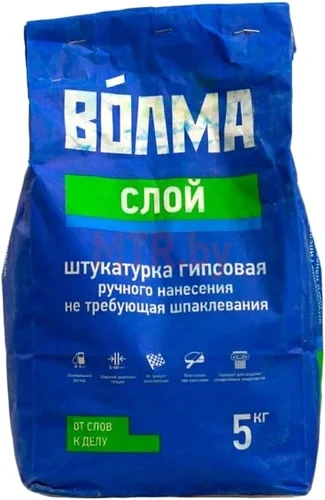 ВОЛМА-Слой - сухая штукатурная смесь на основе натурального гипса, легкого заполнителя, минеральных наполнителей и модифицирующих добавок, обеспечивающих высокую адгезию, водоудерживающую способность и оптимальное время работы.